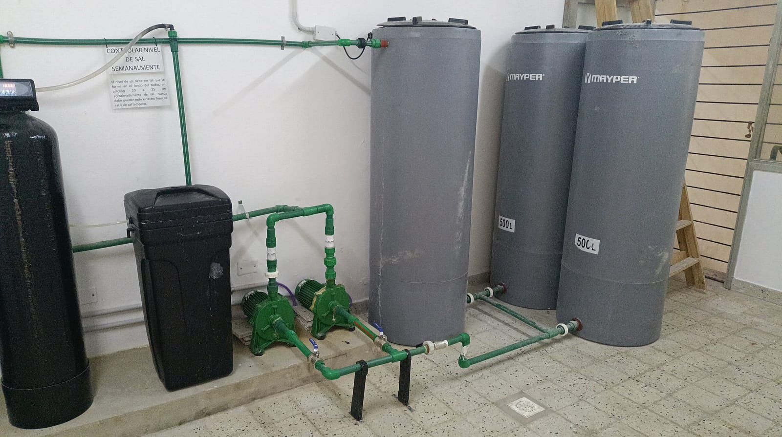 La obra consistió en la instalación de un sistema ablandador de agua, un equipo eléctrico a base de sal que retiene los carbonatos de calcio y magnesio -principales responsables de la formación de sarro- y los elimina mediante un sistema de drenaje.
