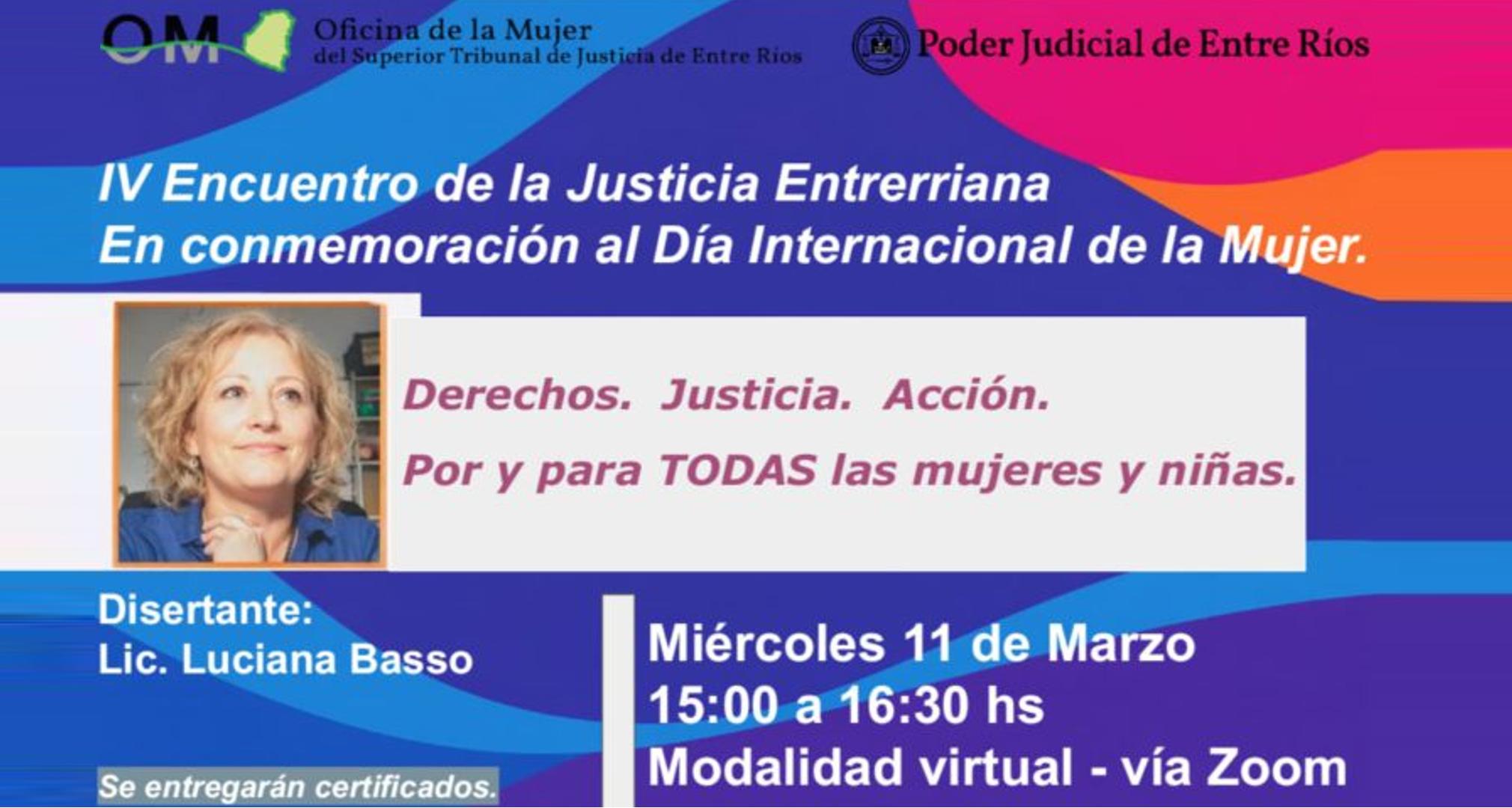 La Oficina de la Mujer del Superior Tribunal de Justicia de Entre Ríos invita a participar del “IV Encuentro de la Justicia entrerriana en conmemoración al Día Internacional de la Mujer” – 8M- .