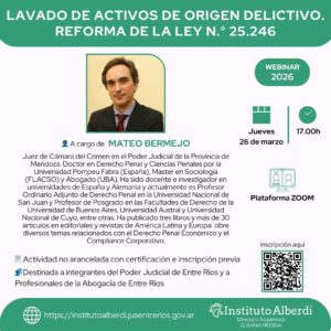 Quienes deseen participar deben inscribirse en https://institutoalberdi.jusentrerios.gov.ar/events/webinar-lavado-de-activos-de-origen-delictivo-reforma-de-la-ley-n-25-246-2/