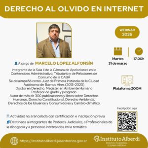 Las inscripciones se realizan de manera online en https://institutoalberdi.jusentrerios.gov.ar/events/webinar-derecho-al-olvido-en-internet/