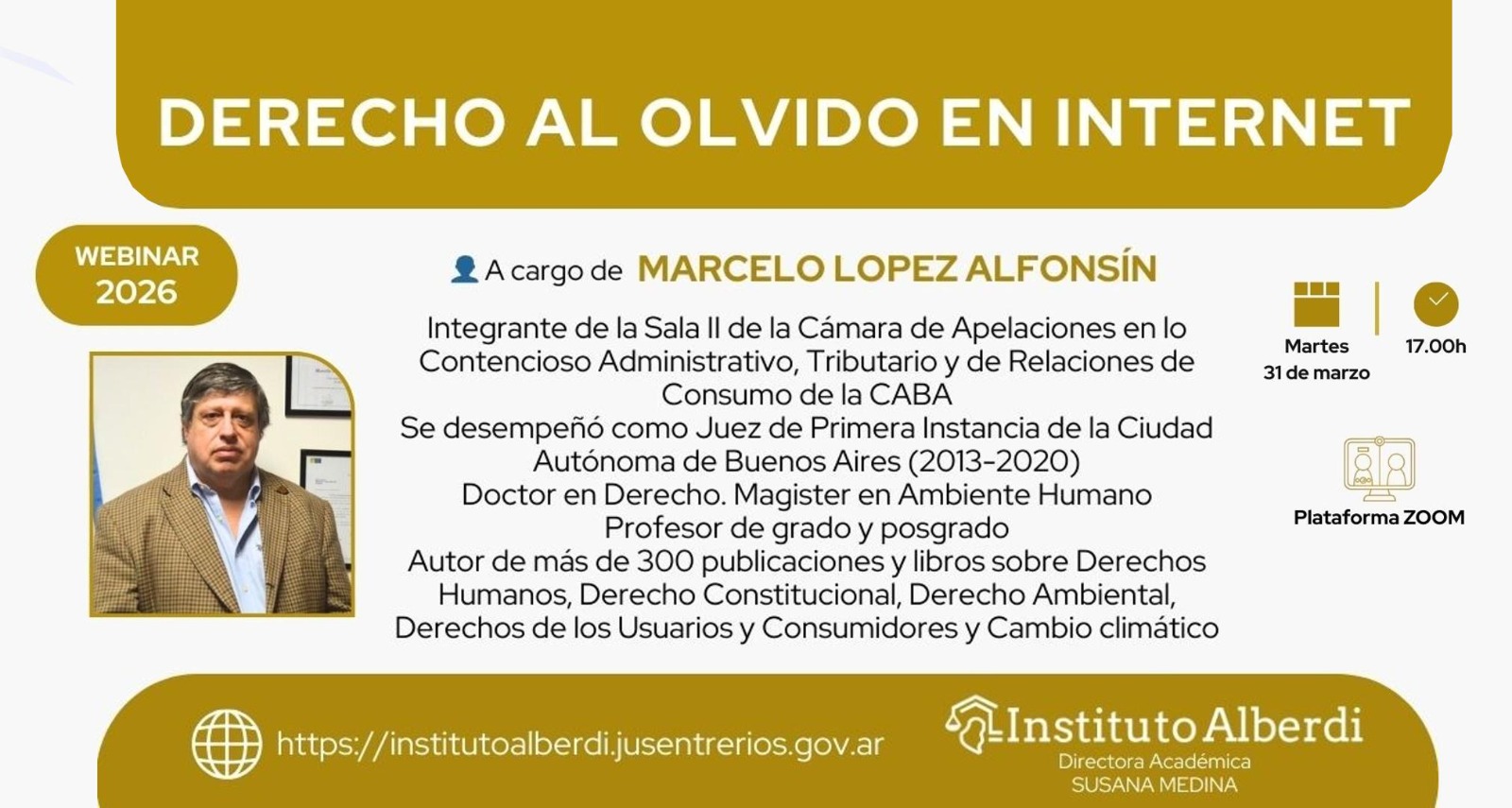 Las inscripciones se realizan de manera online en https://institutoalberdi.jusentrerios.gov.ar/events/webinar-derecho-al-olvido-en-internet/