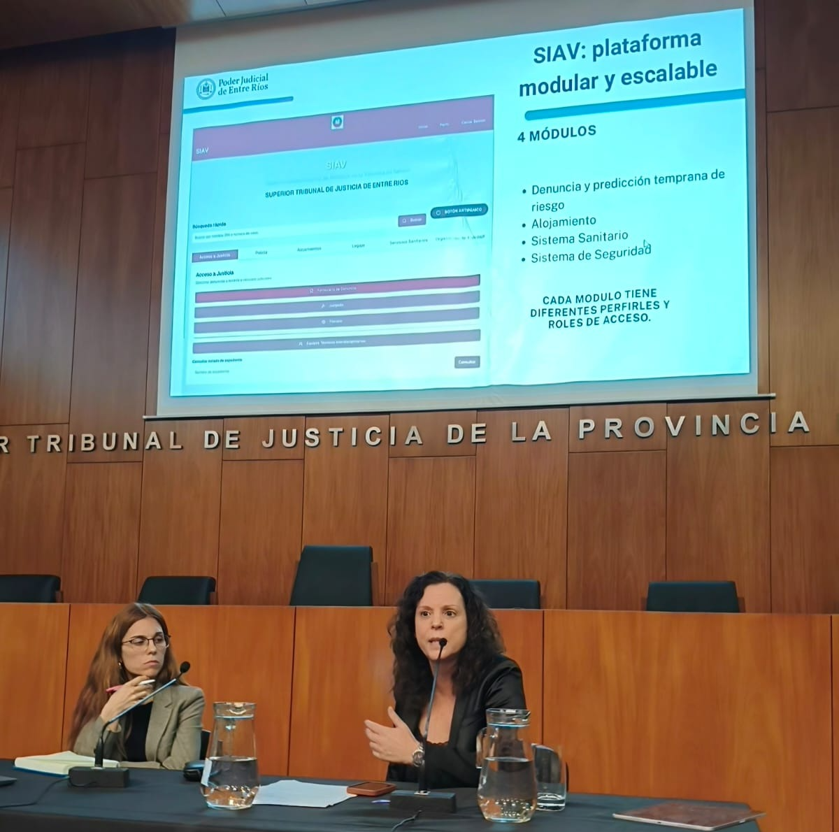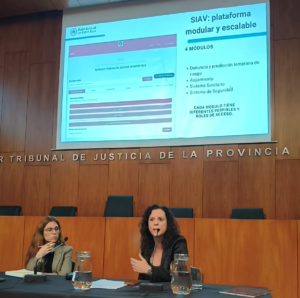 Sobre esta temática se explayó la Secretaria General del STJER, a cargo del Programa de Gestión Judicial, Elena Salomón. Al explicar su alcance remarcó que el SIAV no es IA pura sino un modelo de automatización de procesos, y que, como en todo sistema de predicción de riesgo, hay un posicionamiento político, conceptual y epistémico. Es una plataforma interdisciplinaria e interinstitucional para asegurar la trazabilidad de datos de violencia, que pertenece y fue diseñado por el Superior Tribunal de Justicia, con su base de datos.