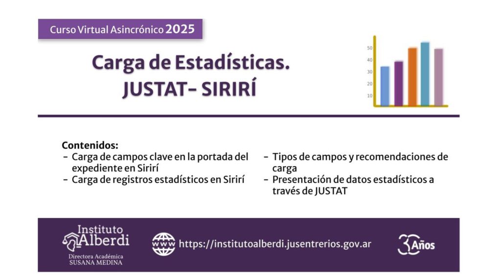 Stefanía D’iorio y Marcos Londero, del Área de Planificación, Gestión y Estadística del Superior Tribunal de Justicia de Entre Ríos, serán los docentes a cargo del curso virtual asincrónico y con evaluación de carga de estadísticas, JUSTAT – SIRIRÍ.   Estará disponible a partir del 25 de septiembre, al lunes 27 de octubre próximos.   […]