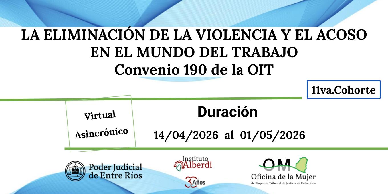 La Oficina de la Mujer del Superior Tribunal de Justicia de Entre Ríos, tiene el agrado de invitarle a participar de la capacitación elaborada por la Oficina de la Mujer de la Corte Suprema de Justicia de la Nación, sobre “La Eliminación de la Violencia y el Acoso en el Mundo del Trabajo (Convenio 190)”