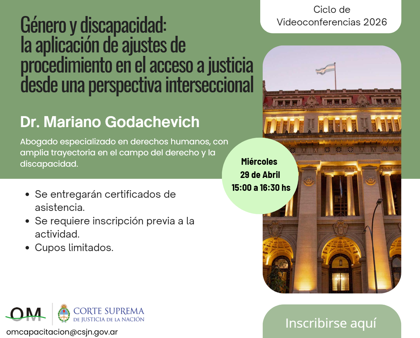 Desde la Oficina de la Mujer (OM) del Superior Tribunal de Justicia de Entre Ríos tenemos el agrado de invitarla/o a la videoconferencia, organizada por la OM de la Corte Suprema de Justicia de la Nación, sobre “Género y discapacidad: la aplicación de ajustes de procedimiento en el acceso a justicia desde una perspectiva interseccional”. Expondrá Mariano G. Godachevich